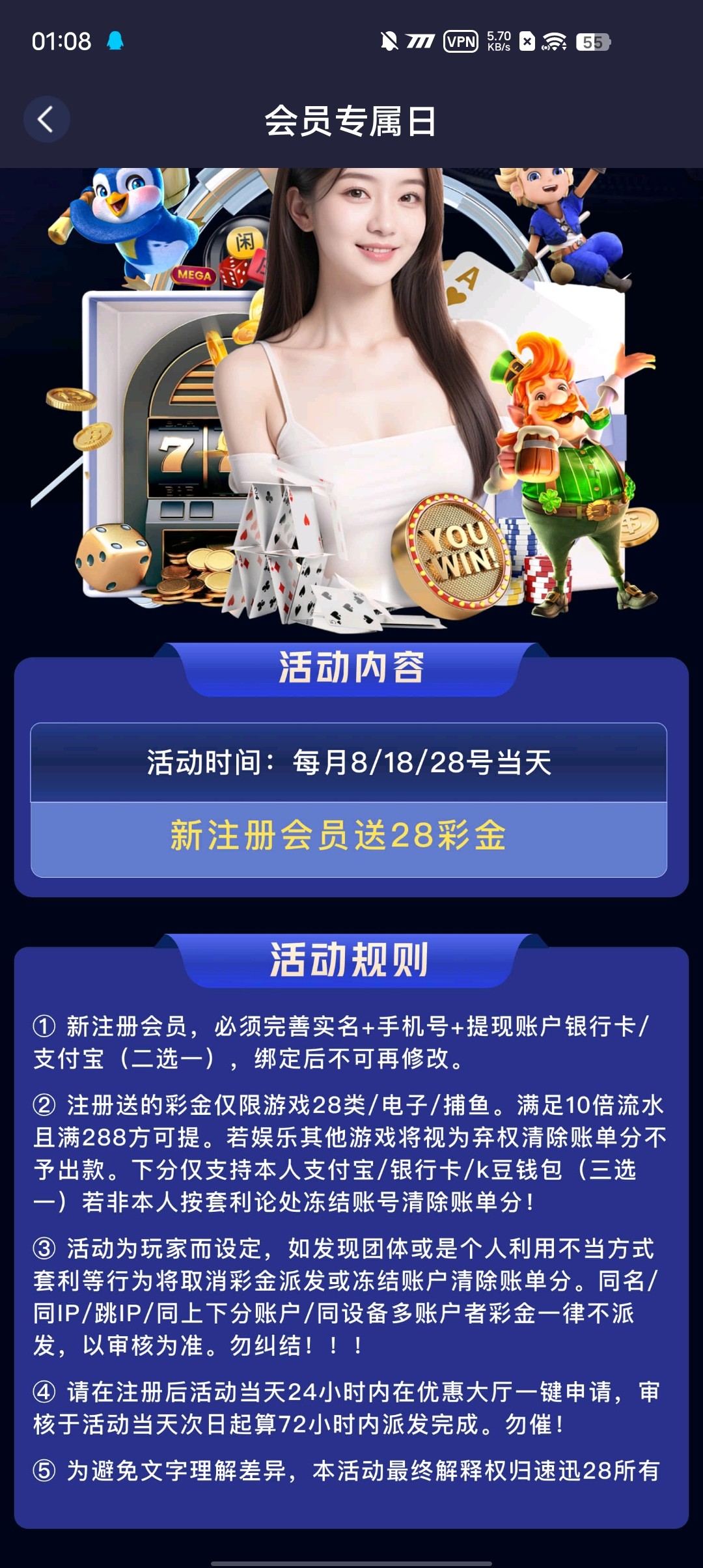 ①新注册会员,必须完善实名+手机号+提现账户银行卡/支付宝(二选一),绑定后不可再修改。